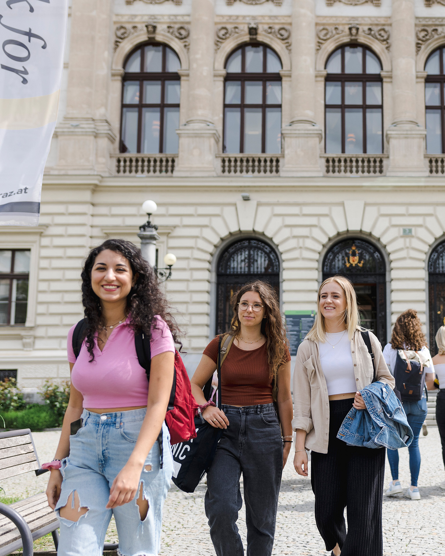 Studierende vor dem Uni Graz Hauptgebäude ©Uni Graz/Kanizaj